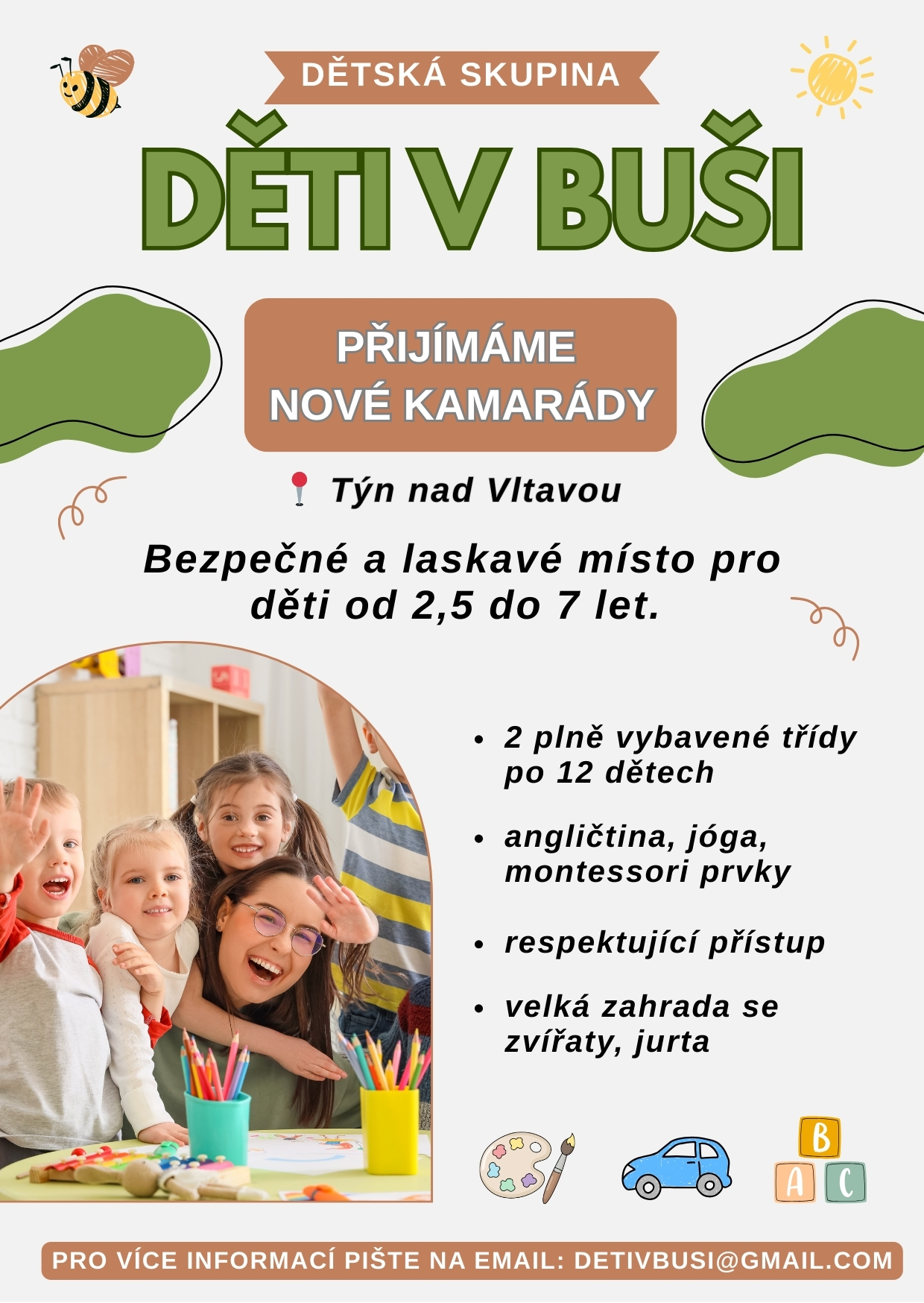 V naší dětské skupině přijímáme děti. Více viz plakátek